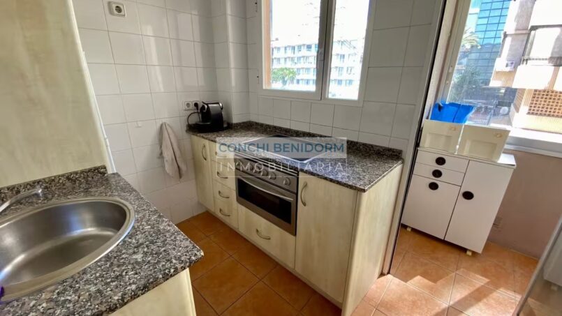 Het appartement beschikt over drie slaapkamers, elk met een tweepersoonsbed. Er zijn twee complete badkamers en een aparte keuken met koelkast/vriezer en een keramische kookplaat. Verder is er een ruime woon-eetkamer en een open terras met uitzicht op het zwembad en de Avenida del Mediterráneo.