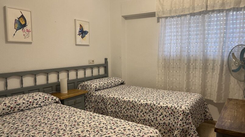 El apartamento dispone de dos dormitorios con cuatro camas individuales en total. La cocina dispone de frigorifico/congelador y cocina de vitrocerámica de 4 fuegos. El cuarto de baño recién reformado dispone de ducha. La terraza acristalada dispone de una mesa de comedor, sofá cama y también de un toldo, para que puedas disfrutar las vistas a la playa sin pasar calor.
